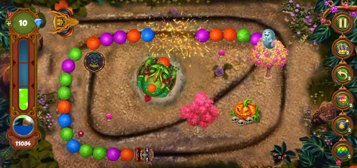 The visuals of the game are incredible as well. The game features a pretty well detailed backgrounds for its levels, the marbles themselves look sharp and colorful and there are lots of delightful animations and special effects to enjoy as the game goes on.